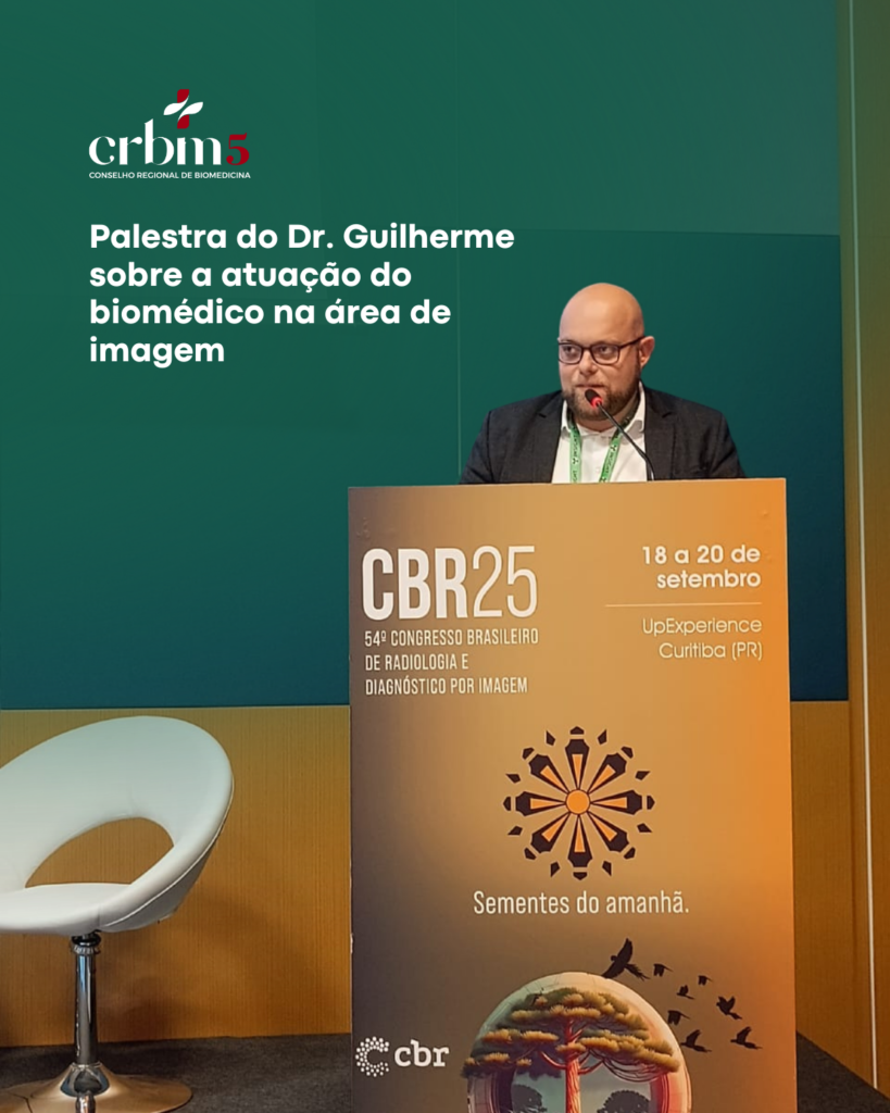 Na ocasião, o Delegado Dr. Guilherme ministrou palestra sobre a atuação do biomédico na área de imagem, acompanhado da Conselheira Emiliana, reforçando a representatividade da Biomedicina em diferentes habilitações.