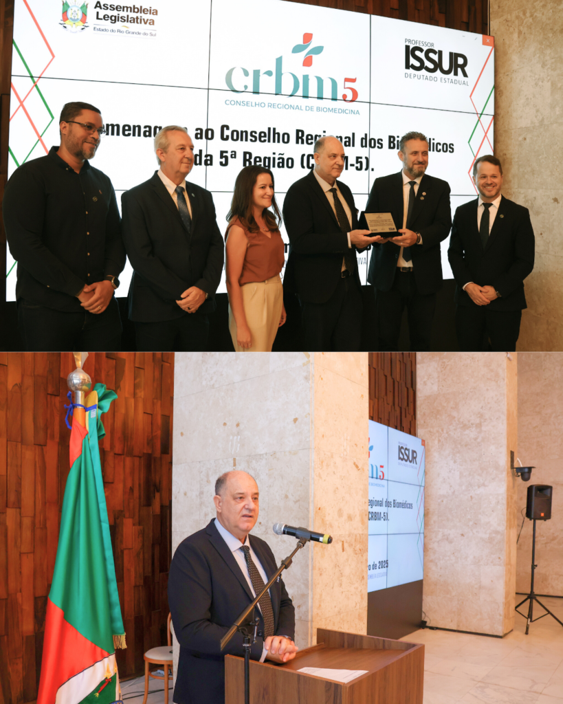 O CRBM-5 e os biomédicos da 5ª Região receberam uma homenagem na Assembleia Legislativa do Rio Grande do Sul, proposta pelo Deputado Estadual Professor Issur Koch, em reconhecimento ao trabalho e à atuação essencial desses profissionais para a saúde pública.
