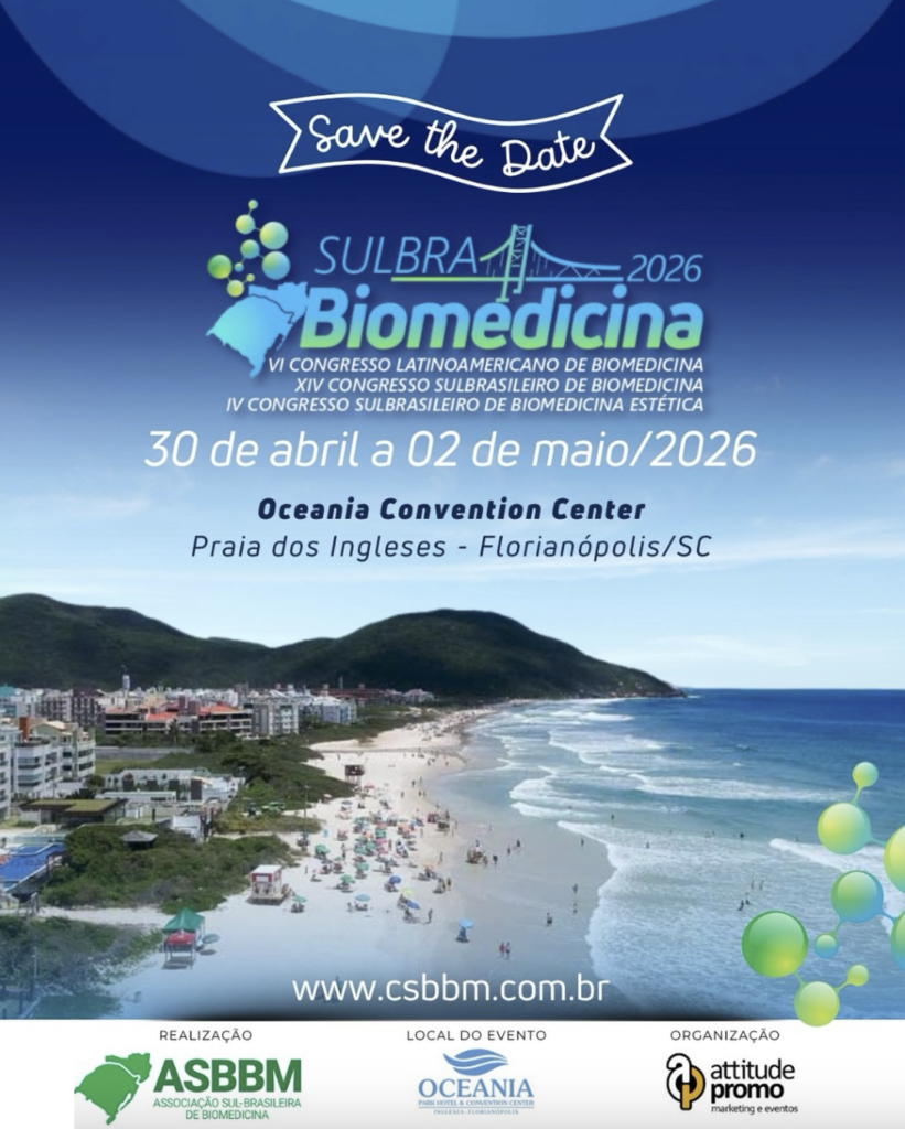 Entre os dias 30 de abril a 02 de maio de 2026, Florianópolis/SC será palco de um dos eventos mais importantes da área: o VI Congresso Latino-Americano de Biomedicina, o XIV Congresso Sul-Brasileiro de Biomedicina e o IV Congresso Sul-Brasileiro de Biomedicina Estética.